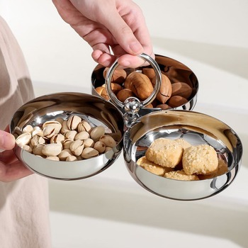 Juego de cuencos de tres piezas de acero inoxidable moderno europeo, bandeja de té creativa para mesa de centro casera, Metal pulido para aperitivos de frutas